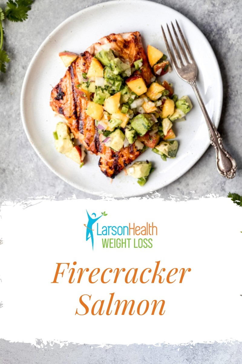 Top salmon with peach avocado salsa and serve with brown rice, black rice quinoa, or extra veggies for a full meal.