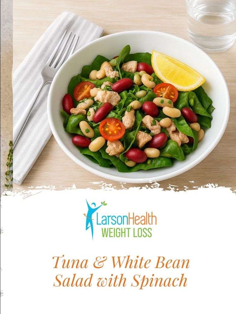 Calories : 456.85 Fat : 14.38 g Carbs : 27.06 g Protein : 52.54 g Fiber : 8.41 g Sugar : 3.24 g Tuna & White Bean Salad with Spinach